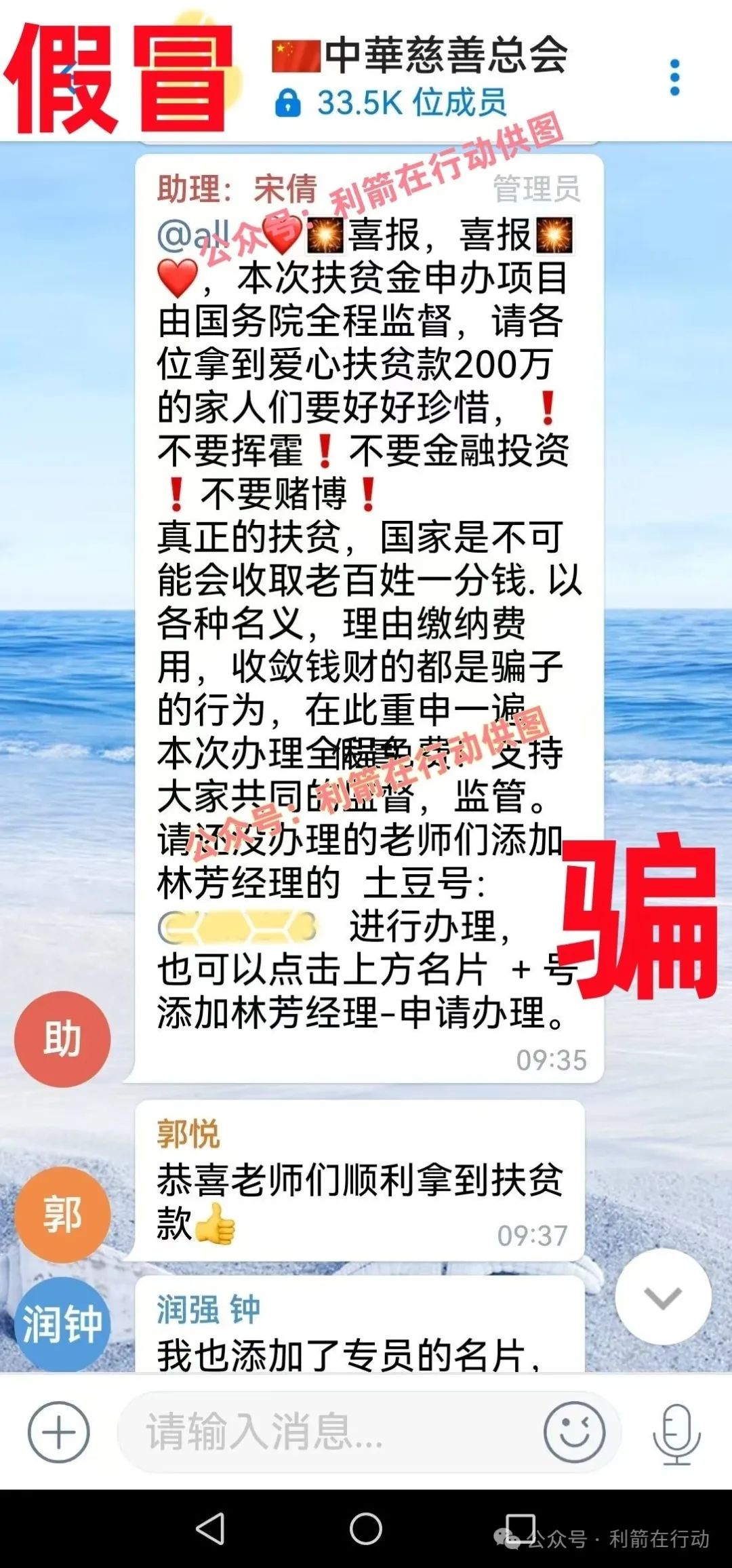 提醒:慈善机构不会通过网络私下发放大额 “扶贫款”,遇到此类信息可向官方核实或报警。