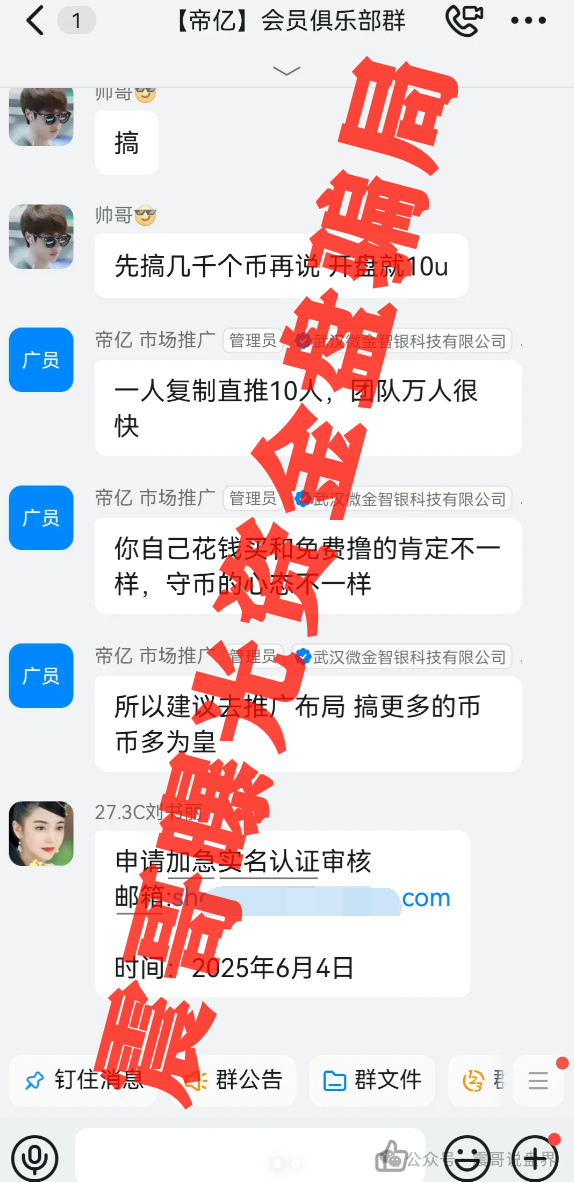 帝亿交易所:这帮人玩得挺花,团队长拉人头能拿30%返点,还搞什么餐补、讲师补贴,听着挺正规是吧?实际上全是套路!普通用户被忽悠进去,什么注册送币、182.5%年化收益,看着诱人,结果呢?规则说变就变,钱根本提不出来,系统升级成了拖延的借口,资金去向更是谜一样。咱们国家早就明令禁止非法虚拟货币交易,这种盘子风险极大,搞不好哪天就崩盘跑路,或者直接被政府端了。