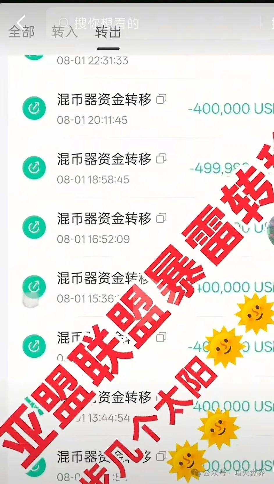 据了解,“亚盟联盈”暴雷之后,操盘团伙利用混币器大量转移资金池里的USDT,已无法追踪到去向,也许过两个月,这伙骗子就又会再次开盘,再次开启收割之路!