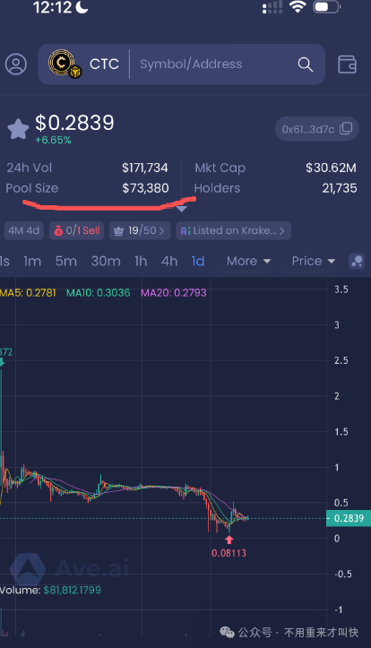 而且ctc目前几乎就是归零的价格,流动性已经可以说是没有,一共7万美金的池子: