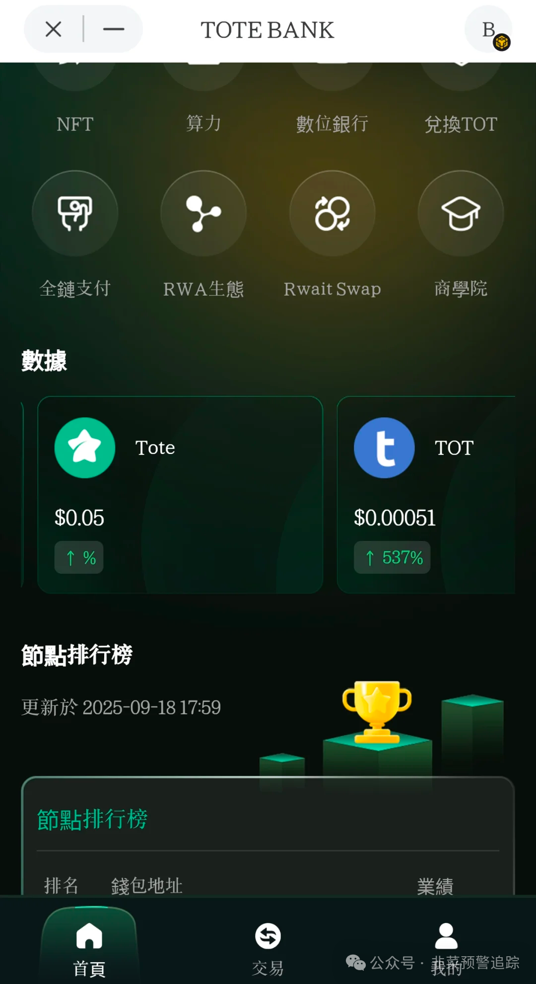 Tote Bank众盛合约,它以白名单特权、矿机算力暴利等为诱饵,设置拉人头传销架构,还玩虚假兑付障眼法,现已有崩盘前兆。可通过查代币身份证,破高收益话术等方法识破同类骗局。若已入坑,记得集体维权。记住,用层级奖励替代技术价值的项目,必是镰刀。