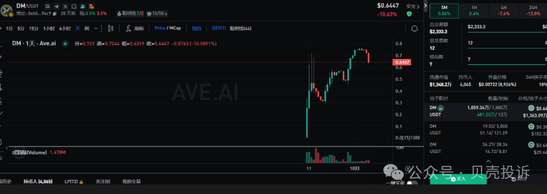 项目方宣称DM具有通缩机制,每笔交易都会销毁部分DM,使其流通量不断减少。
