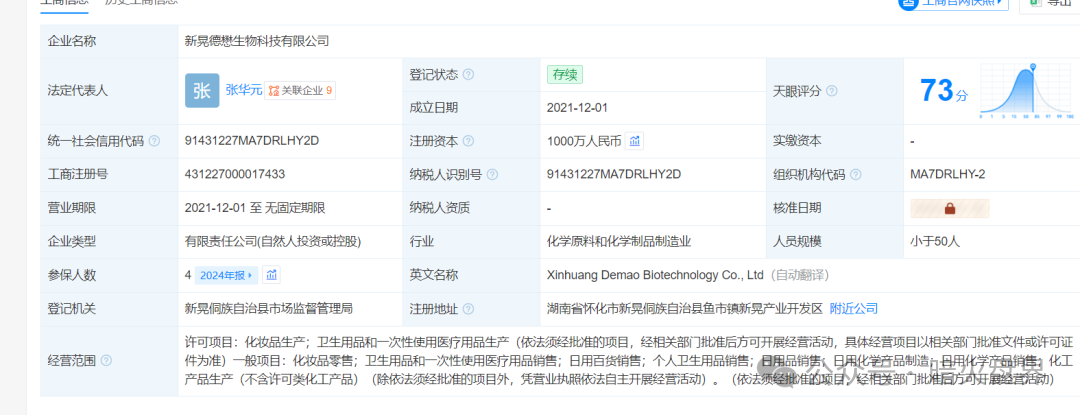 根据推广人员给小诺发的视频讲解材料中提到的,该项目的实控人最开始创建的是“新晃德懋”创建时间在2021年,主要负责提供产品供应。公司成立在新晃,是因为新晃是该公司生产的商品原材料“龙脑”的主产地。然后创建的是“香港德懋”创建时间在2024年5月,最后由香港公司出资控股创建了“怀化德懋”。然后由怀化德懋来实现项目的具体推广。但是在小诺看的项目相关宣传材料中只提到了“香港德懋”。推广者应该是认为在大陆港资企业也算是一种印象背书。